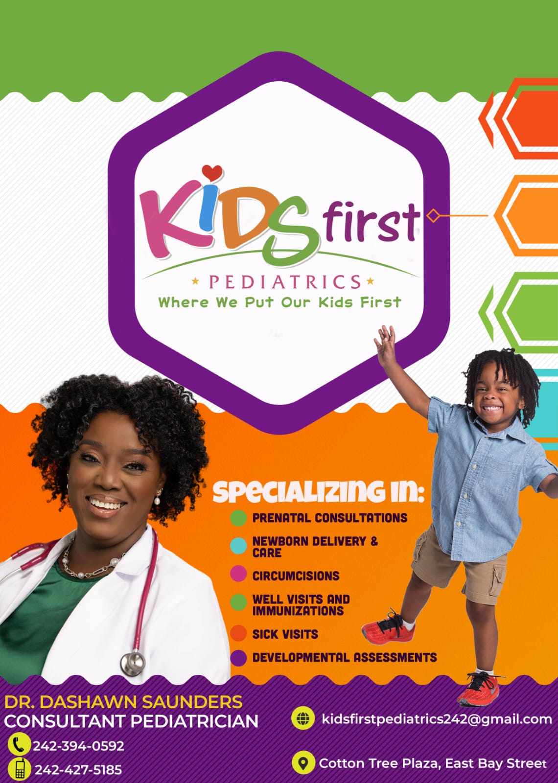Kids First Pediatrics Clinic is a state of the art healthcare facility and medical home catering to infants, children and adolescents. We provide excellent and exceptional care to children and their families in a welcoming and child friendly environment.